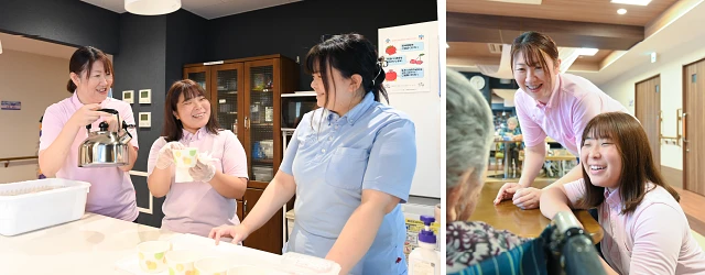 入職後はエルダー制による指導のもと、ユニットケアに必要な知識と技術を身に付けることができます。ブランクのある方でも安心してお仕事が始められます。ご興味ある方からのご応募をお待ちしています。