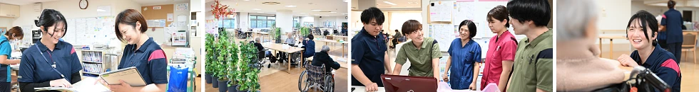 地域随一の敷地面積・利用者数を誇る大型の介護老人保健施設で、6階建てです。入所定員は150名(内認知症専門棟40名)で、通所リハビリテーションの定員は1日40名です。併設施設として、訪問問看護ステーション、居宅介護支援事業所、クリニックがあります。