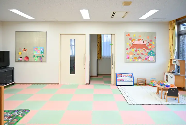 施設内に保育室があります。1日600円、月1万円(おやつ代別途)で、3カ月から6歳までOK。定員5名、保育士3名体制の手厚さです。お子さんの体調に変化があると職場に連絡が行くので、勤務中でも駆けつけることができますし、併設クリニックの小児科を受診できるので安心です。